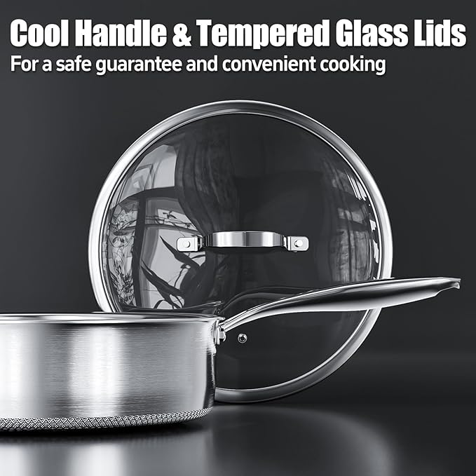 - Special Feature : 5-Layer Stainless Steel, All Stovetops Compatible, Cool Handle, Dishwasher Safe, Tempered Glass Lid
