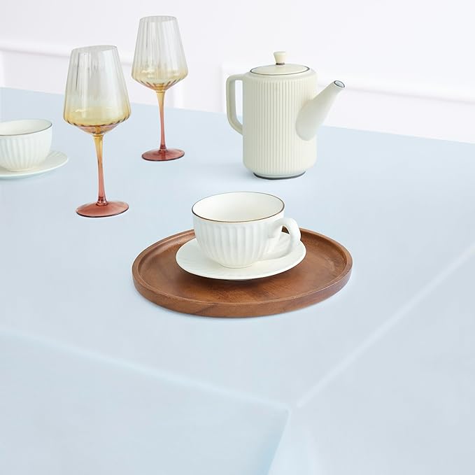 Solino Home Light Blue Cotton Linen Tablecloth 58 x 84 Inch - Hemstitch Table Cloth for Rectangle Tables - Machine Washable Tablecloth for New Year