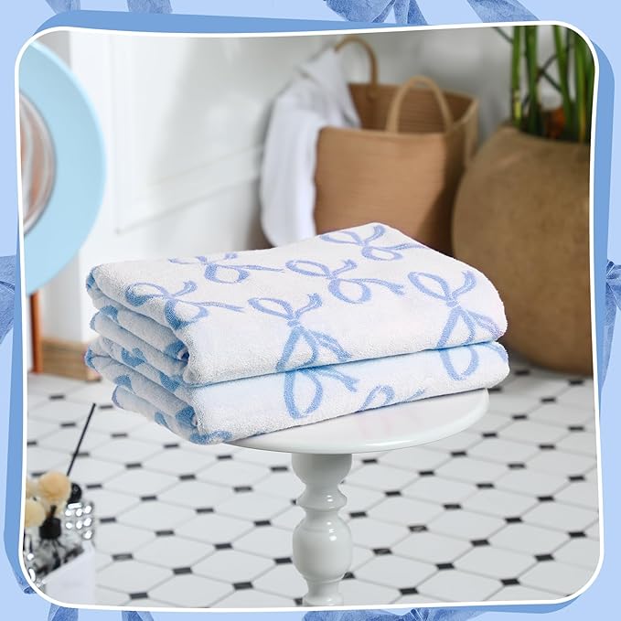 - Style Statement: elegantly adorned with a blue bow design, these towels add a decorative accent to bathrooms, kitchens, spas and gyms, transforming ordinary spaces into something more stylish