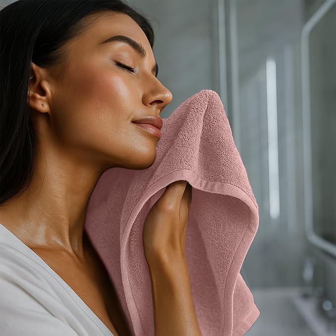 RIVERSIDE 12 Pack Washcloths - 12x12 Inches, 400 GSM, 100% Ring-Spun Cotton - Soft, Absorbent & Durable Face and Body Towels - for Bathroom, Spa, Gym, Makeup Removal & Everyday Use - Dusty Rose