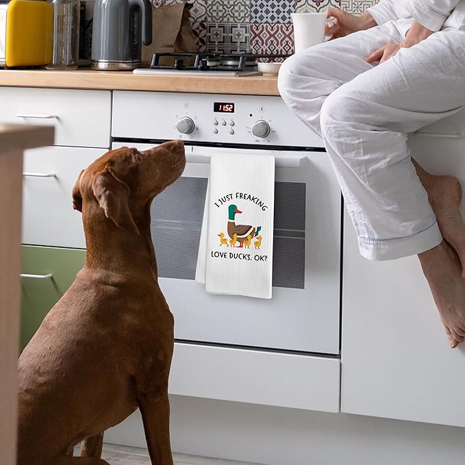 Funny Mallard Duck Bathroom Hand Towels Gifts, Woodsy Duck Bathroom Decor for Home, Cute I Just Freaking Love Ducks Accessories Dish Hand Tea Kitchen Towels for Kitchen, 16x24Inch