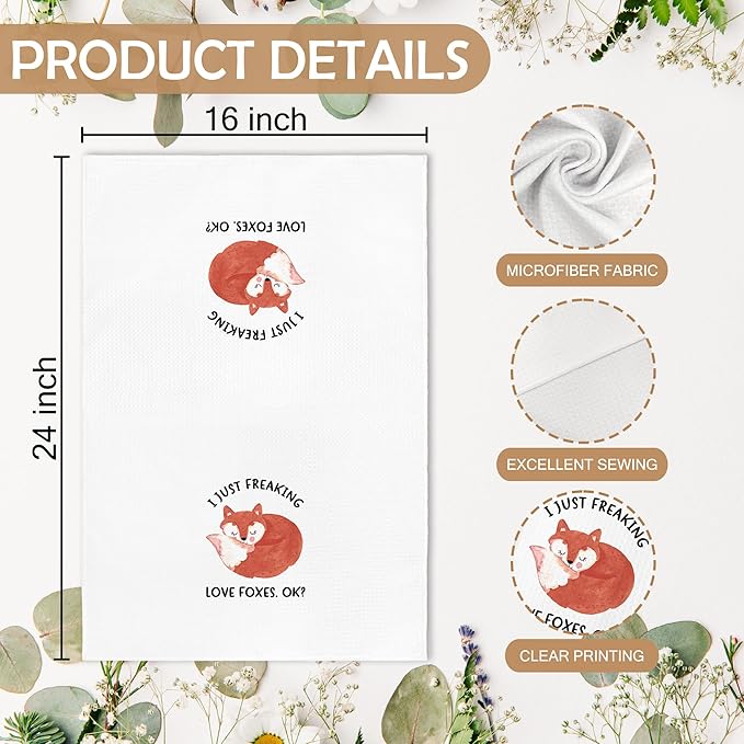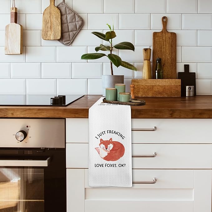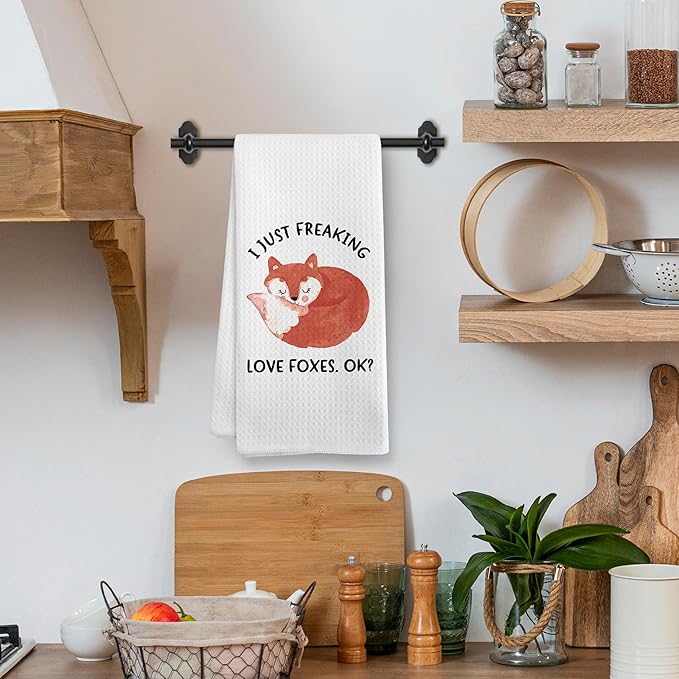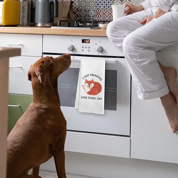 Funny Fox Kitchen Towels Gifts for Women, Fox Bathroom Decor Decorations for Home, Cute Kids I Just Freaking Love Foxs Decor Dish Hand Tea Towels Stuff for Bathroom Kitchen,16x24Inch