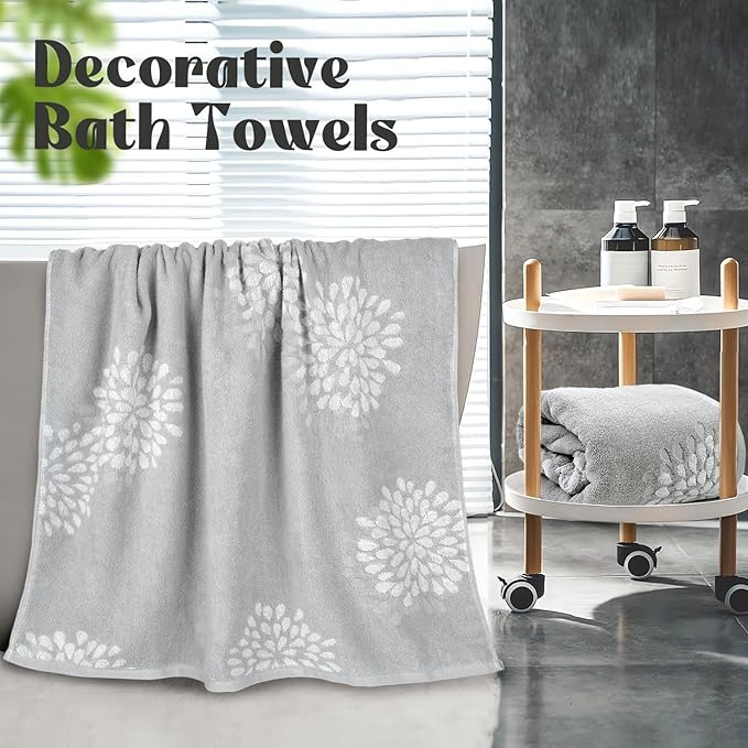 - Decorative Floral Charm: Cute bath towels in cool light grey, blooming with hydrangea-inspired texture. Perfect for those who love modern, farmhouse, boho, rustic, or retro aesthetics