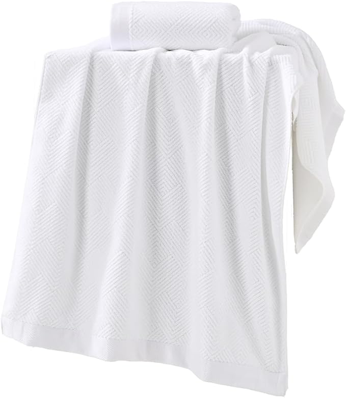 sense gnosis Snow White Bath Towel Set of 2 Striped Weave 100% Cotton Super Soft Highly Absorbent Summer Bath Towels for Bathroom 27x 55 Inch