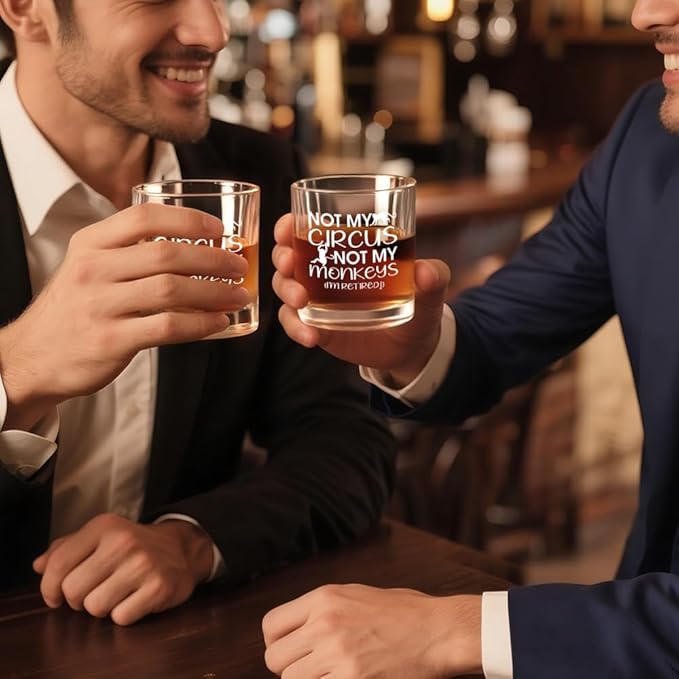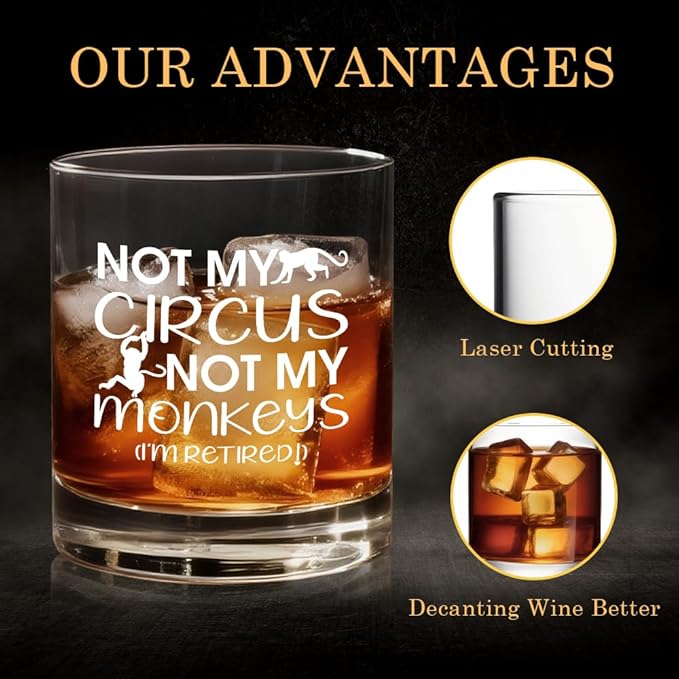 - This whiskey glass is printed with the sentence "Not My Circus Not My Monkeys I'm Retired", making it a perfect lighthearted retirement gift for coworkers, bosses, or friends stepping into their well-earned freedom.