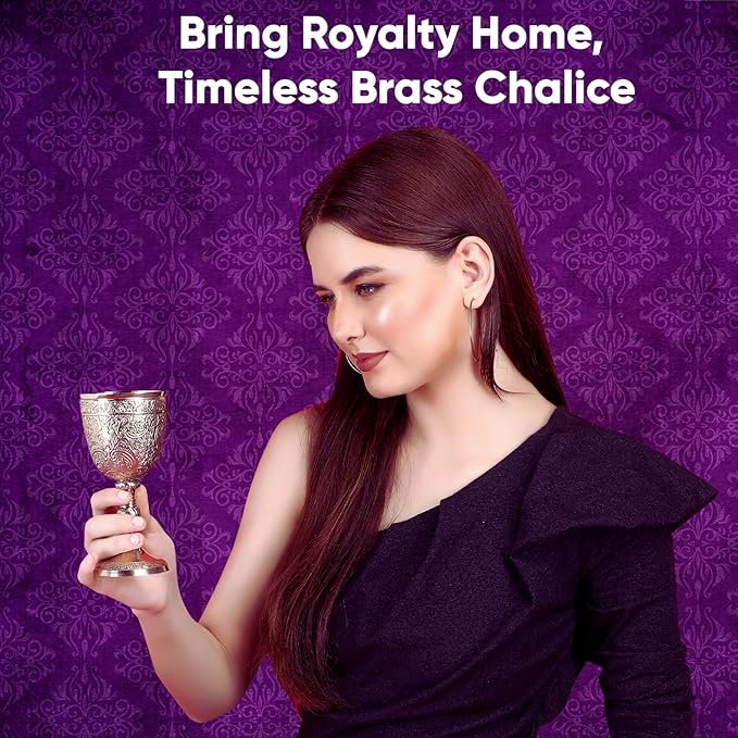REPLICARTZ Gold Embossed Chalice Goblet – Medieval-Style Brass Cup for Ceremonial Use, Wine, Altar, and Religious Décor – 7 oz / 210 ml Full Size Vintage Goblet for Collectors & Gifts