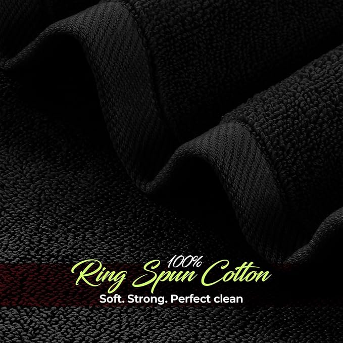RIVERSIDE 12 Pack Washcloths - 12x12 Inches, 400 GSM, 100% Ring-Spun Cotton - Soft, Absorbent & Durable Face and Body Towels - for Bathroom, Spa, Gym, Makeup Removal & Everyday Use - Black