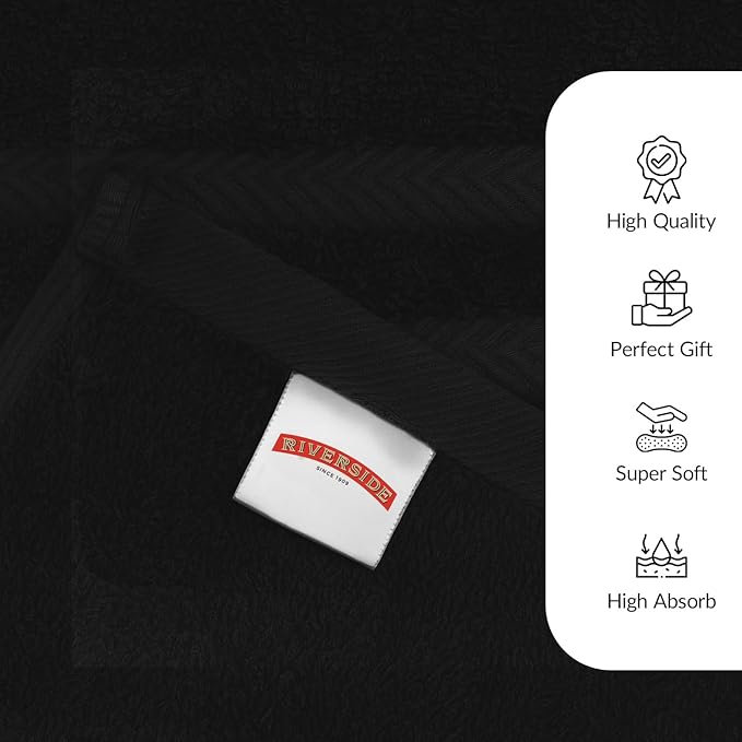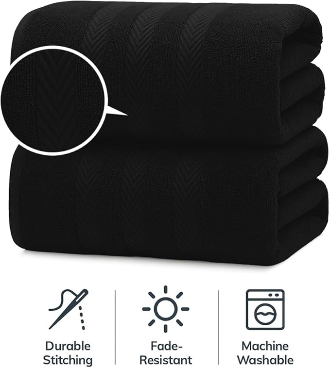 RIVERSIDE Pack of 2 Extra Large Bath Sheets 35 x 70 Inches - 100% Ring Spun Cotton Hotel Quality Oversized Bath Towels - Super Soft, Highly Absorbent & Quicker to Dry - Black