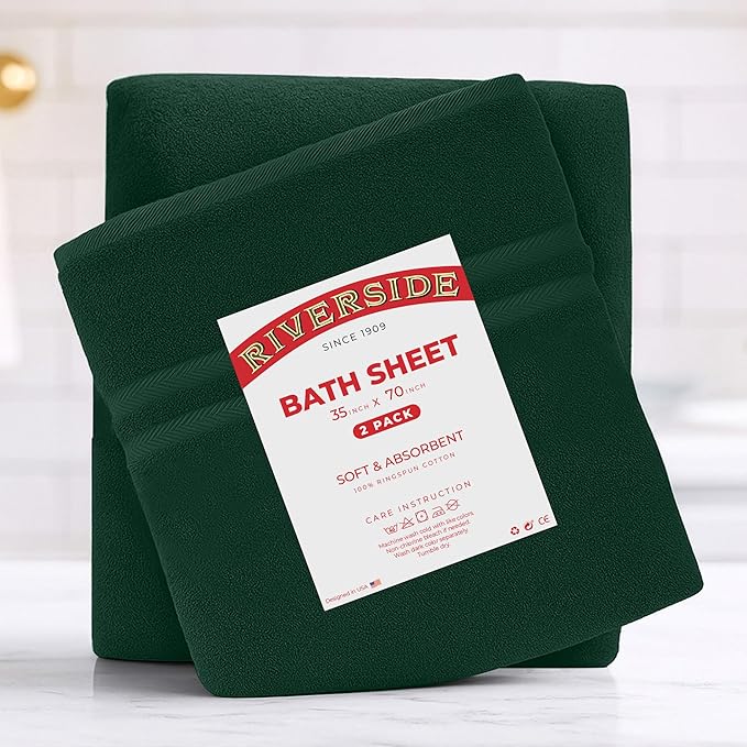 RIVERSIDE Pack of 2 Extra Large Bath Sheets 35 x 70 Inches - 100% Ring Spun Cotton Hotel Quality Oversized Bath Towels - Super Soft, Highly Absorbent & Quicker to Dry - Hunter Green
