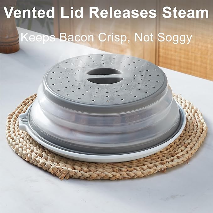 - 𝗩𝗲𝗿𝘀𝗮𝘁𝗶𝗹𝗲 𝗕𝗮𝗰𝗼𝗻 𝗖𝗼𝗼𝗸𝗲𝗿 𝘄𝗶𝘁𝗵 𝗖𝗼𝘃𝗲𝗿 - 𝗨𝘀𝗲 𝗔𝗻𝘆𝘄𝗵𝗲𝗿𝗲: This 11 inch round Bacon Baking Rack is safe for Microwave, Oven, and Dishwasher. Use it as a Bacon Dish, Meat Rack, or even a Bacon Plate for serving right from the rack