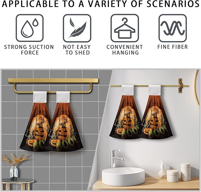 - WONDERFUL GIFT: This Halloween dish towel cloth makes a great addition to any space. Hanging kitchen towels are an perfect alternative to paper towels. It also a wonderful household gift for family, friends, colleagues, birthdays, holidays, housewarming.