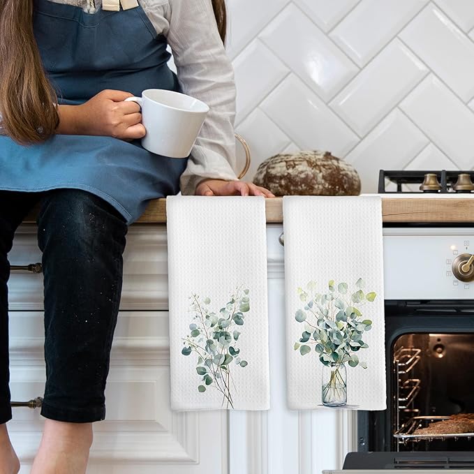 Sage Green Eucalyptus Botanical Kitchen Towels Set of 2, Watercolor Eucalyptus Bathroom Decor, Sage Green Kitchen Decor Hand Towel, Leaves Tea Towel Dish Towels 16x24 Inch
