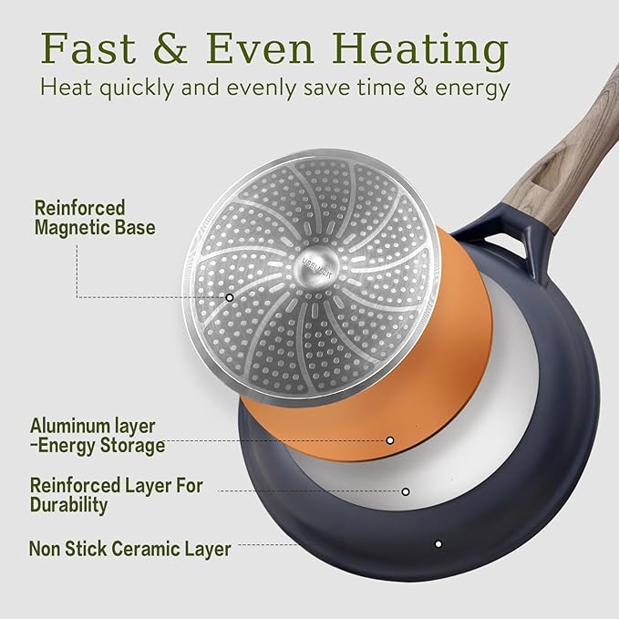 - 100% NON-TOXIC& HEALTH SAFE: Made with a PFOS, PFOA, and Teflon-free ceramic coating for a safer cooking experience.