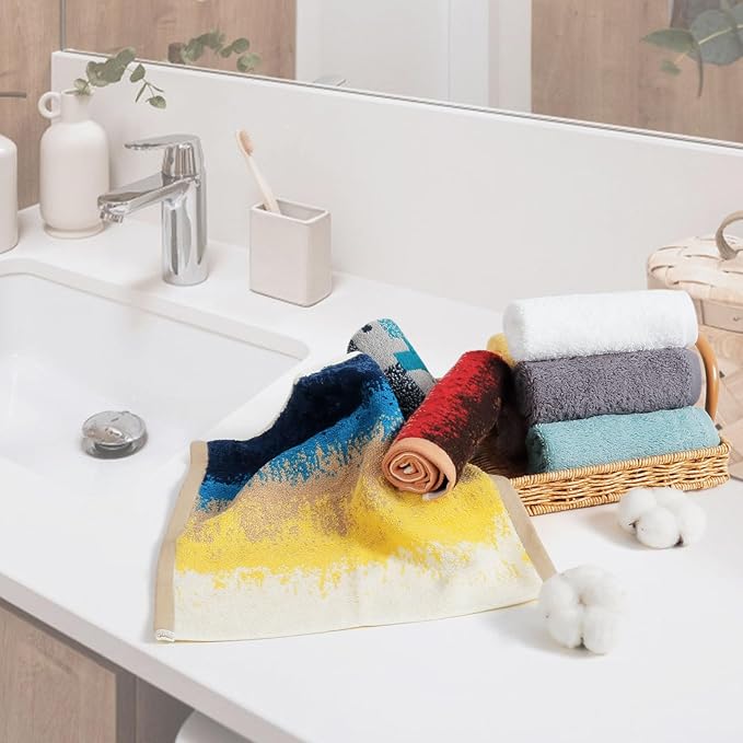 SEMAXE 100% Cotton Washcloths for Bathroom - 24 Pack, Quick-Dry Face Towels with Hanging Loop, Highly Absorbent and Soft, 13x13 Inch, Yellow | Brown | Blue