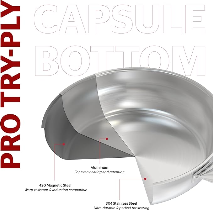 - 98% Magnetic Efficiency: The tri-ply construction optimizes induction effectiveness, delivers faster heat transfer and superior heat distribution for perfectly even cooking across the entire surface.