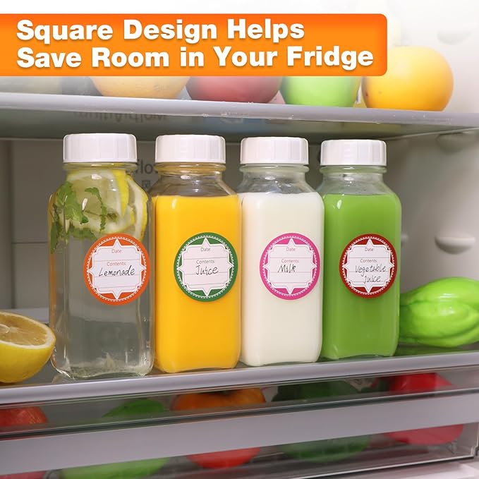 - Clear Measurement Markings & Space-Saving Shape: Easy-to-read dual capacity markers( (ml / fl oz))help you track hydration goals or measure ingredients accurately. With a practical square design, these glass milk bottles offer a comfortable grip and fit efficiently in refrigerator doors, most car cup holders, and bags, maximizing storage space