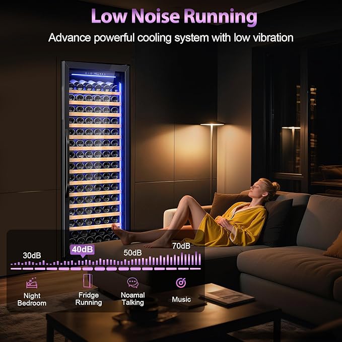 - Large Capacity Wine Cooler: Spacious 24-inch wine refrigerator (23.54''W x 27.17''D x 65.74''H) stores 154 bottles! Perfectly organize & preserve collections for avid collectors or entertaining. Maximize storage without compromising accessibility.