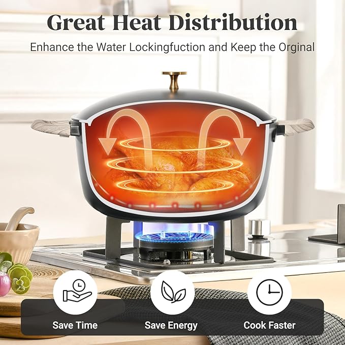 - 【Even Heating, Every Time】Designed for home chefs who demand speed and precision, this pots and pans set heats evenly with no hotspots, thanks to its extended bottom surface. Compatible with gas, electric, ceramic, and induction cooktops