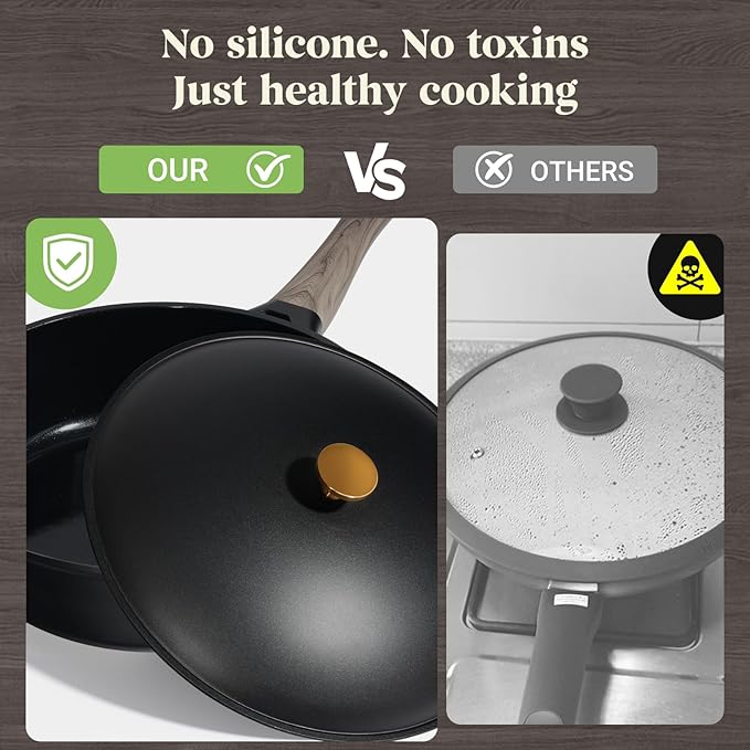 - 【Ti-Ceramic Coating Ultra Non-Stick & Non-Toxic】Engineered with a next-generation ceramic coating enhanced by titanium powder, this non toxic cookware set offers long-lasting nonstick performance and superior scratch resistance. 100% free from PFAS and other harmful chemicals—cook healthy with confidence