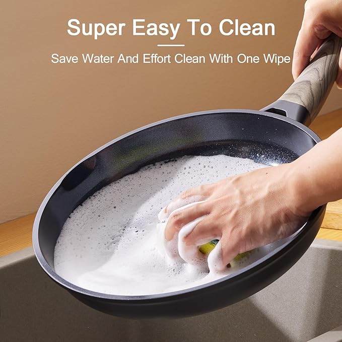 - 【Effortless Cleaning – No Sticking, No Scrubbing】Our ceramic cookware cleans up in seconds—simply rinse or wipe with a sponge. Hand wash is recommended to maintain coating longevity