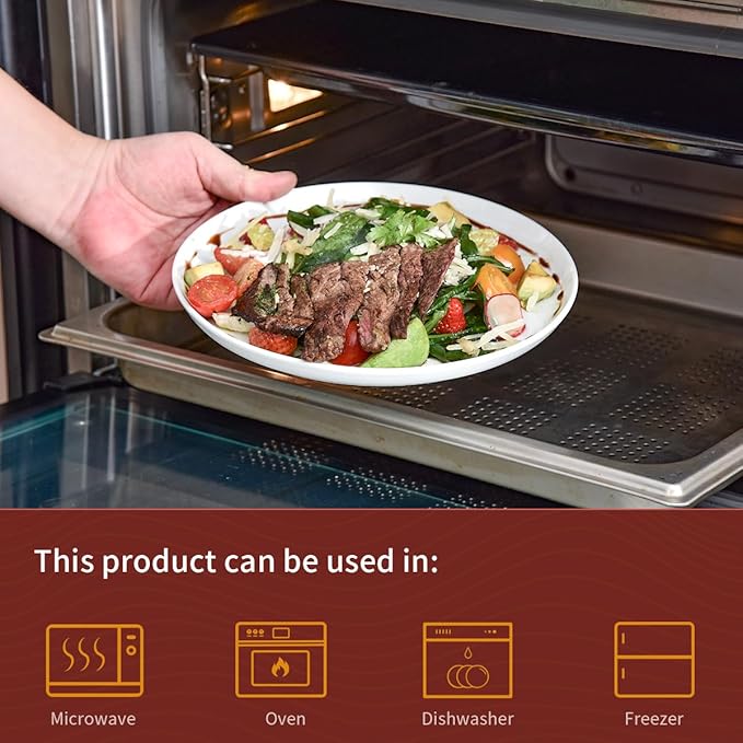 - Stylish and Practical: Elegant and minimalist round design in classic pure white ceramic is ideal for presenting food. The edge of the plate is designed to prevent food spillage. Whether it's a formal dinner party or an everyday meal, these round plates complement any table setting and add a touch of sophistication