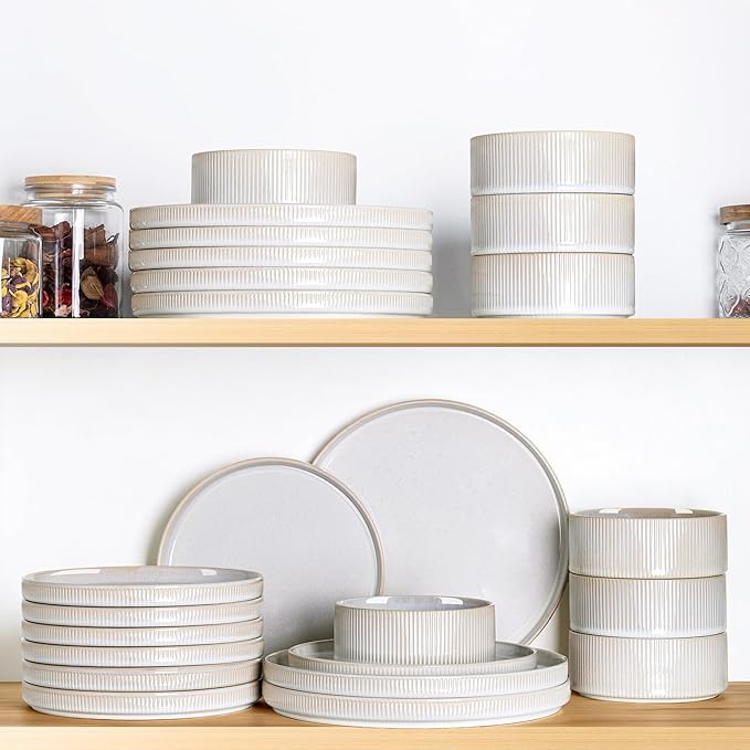 - STACKABLE & EASY TO CLEAN: Our dinnerware set is designed to be stackable. making it ideal for space-saving storage in your kitchen cabinets or pantry. This design helps free up space for other dining sets. The smooth surface makes them easy to clean. You can wash them with soap and hot water, or simply place them into your dishwasher.