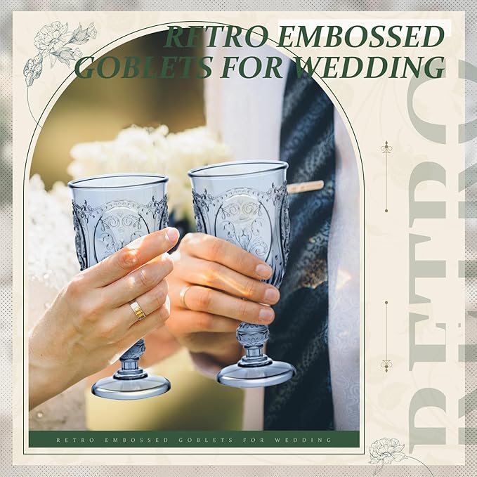 - Elegant Design: our vintage wine glasses set features a European vintage style and embossed design, comfortable to hold in the hand; Use our cups to sip your favorite drinks with your guests at your party and experience the irresistible vintage beauty, add a touch of romantic to your party and impress your guests
