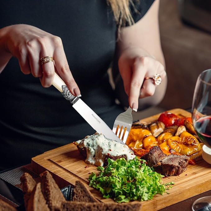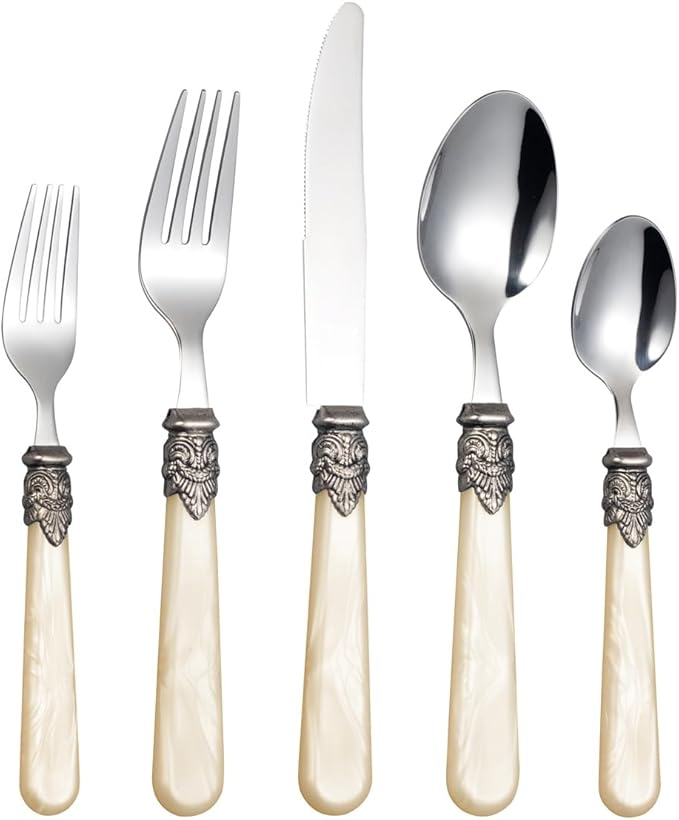 - Timeless Elegance with Vintage Accent:Features ornate retro-style connectors uniting each place setting. The classical silhouette, polished surfaces, and intricate detailing create a sophisticated, heirloom aesthetic blending vintage charm with graceful simplicity.