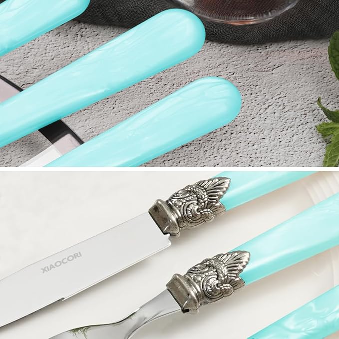 20 Pieces 18/10 Stainless Steel Elegant Silverware Set for 4,Vintage Flatware Set,Dishwasher Safe (20, Blue)