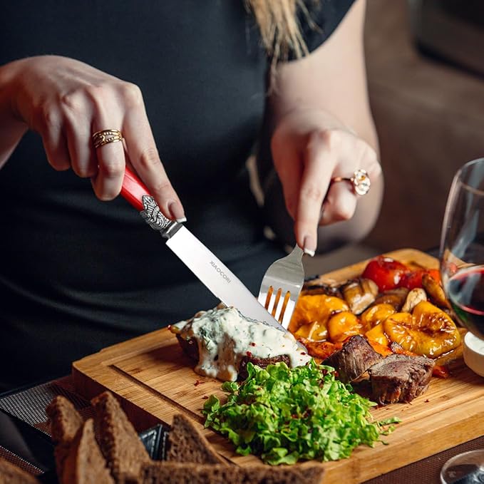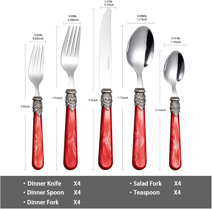 20 Pieces 18/10 Stainless Steel Elegant Silverware Set for 4,Vintage Flatware Set,Dishwasher Safe (20, Red)