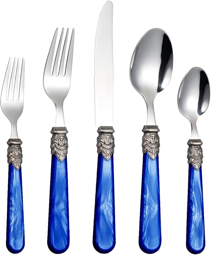 20 Pieces 18/10 Stainless Steel Elegant Silverware Set for 4,Vintage Flatware Set,Dishwasher Safe (20, Deep Blue)