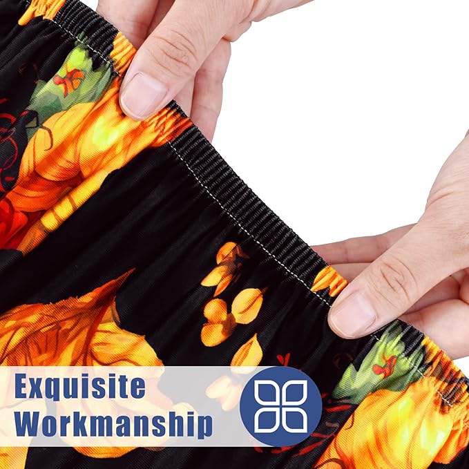 Round Spandex Thanksgiving Tablecloth, Elastic Fitted Waterproof Tablecloths for 45"-56" Tables, Stretch Washable Picnic Table Cover for Autumn Harvest Parties, Pumpkin Sunflower
