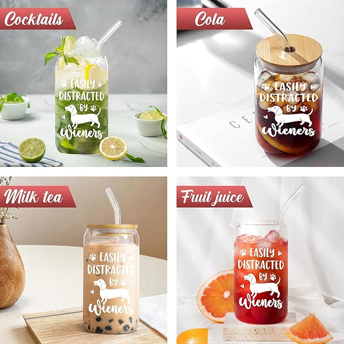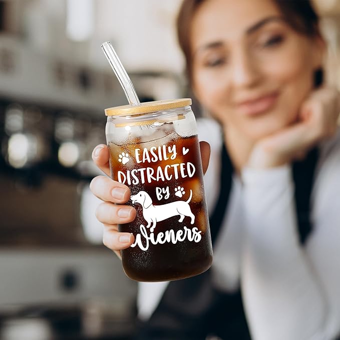 SteadStyle Christmas Dachshund Gifts for Women, Dog Lovers - Glass Drink Cup with Bamboo Lid & Straw (16oz), Birthday Mothers Day Gift For Dackel Owners & Puppy Lovers, Weiner Dog Gifts for Women Mom