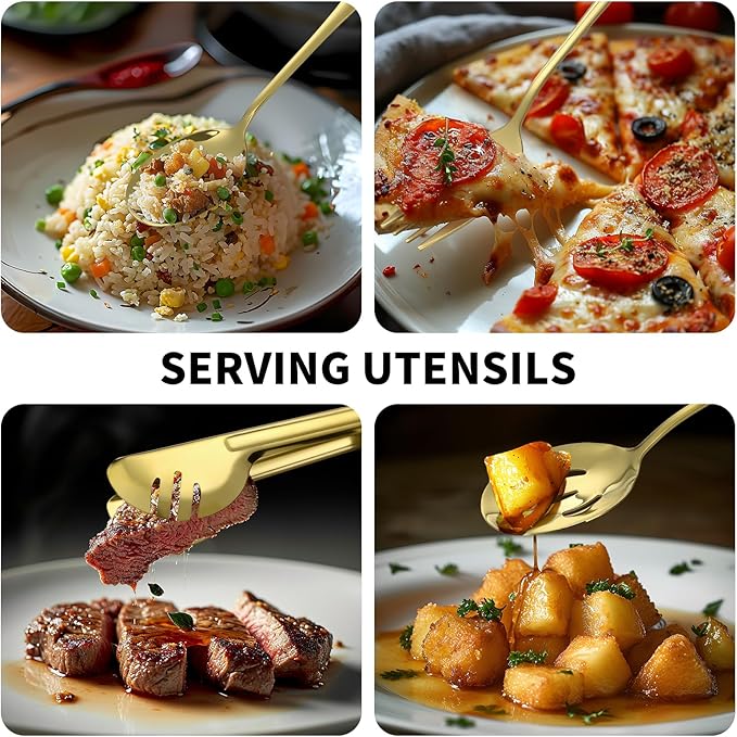 - 【Dishwasher-Durable】—— Military-grade 304 steel survives 3x daily washing (1,248 cycles lab-proven) - no more rusty spoons or cloudy finishes. Unlike traditional silverware sets, our NSF-certified cutlery set maintains mirror polish through years of heavy use