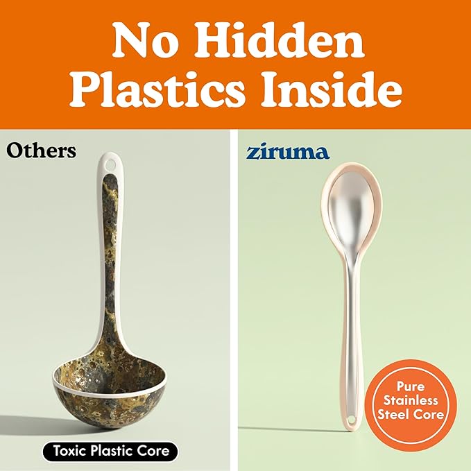 - โ ๐ก๐ผ ๐๐ถ๐ฑ๐ฑ๐ฒ๐ป ๐ฃ๐น๐ฎ๐๐๐ถ๐ฐ๐! - ๐ฃ๐๐ฟ๐ฒ ๐ฆ๐๐ฎ๐ถ๐ป๐น๐ฒ๐๐ ๐ฆ๐๐ฒ๐ฒ๐น ๐๐ผ๐ฟ๐ฒ: Many silicone utensils hide cheap plastic cores. Not us! We use premium 304 stainless steel for a core thatโs strong, safe, and truly plastic free from start to end.