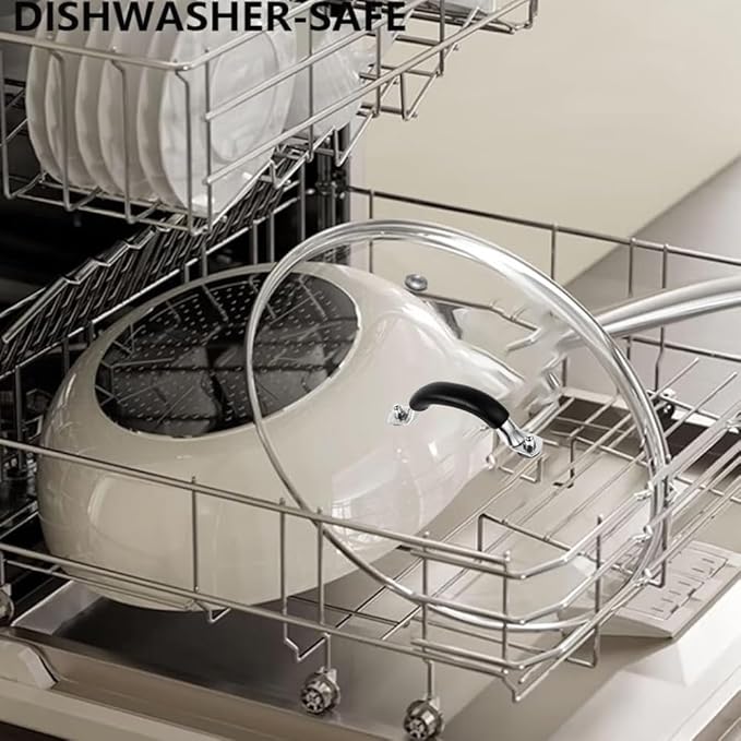 - EFFORTLESS CLEANING -The glass lid is easy to wash by hand with effortless,it's also dishwasher-safe for easy cleaning, long-lasting essential for every kitchen.