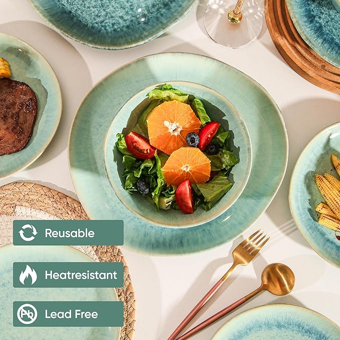 - Microwave, Dishwasher, and Oven Safe: Enjoy versatile use—reheat meals, bake sides, or clean up effortlessly. This dinnerware set combines modern design with practical convenience, making your everyday dining stylish, safe, and simple.