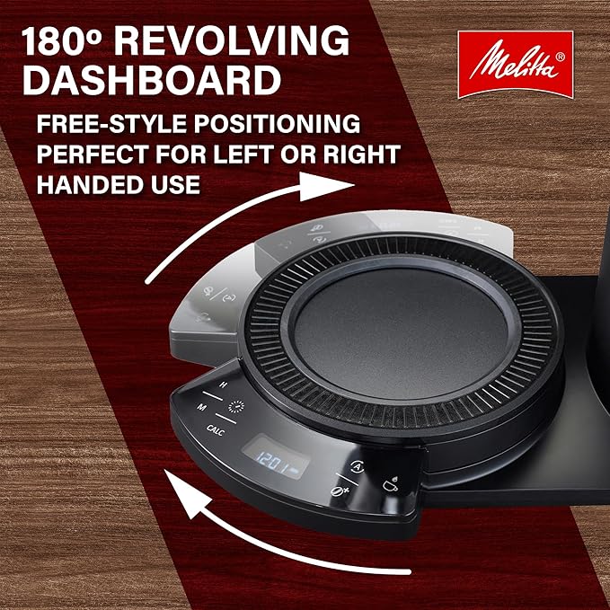 - Elegant design - This stylish coffee maker is not only a kitchen appliance, but also a conversation starter. Its unique 180° swivel dashboard allows for flexible positioning that is ideal for both right and left-handed users.