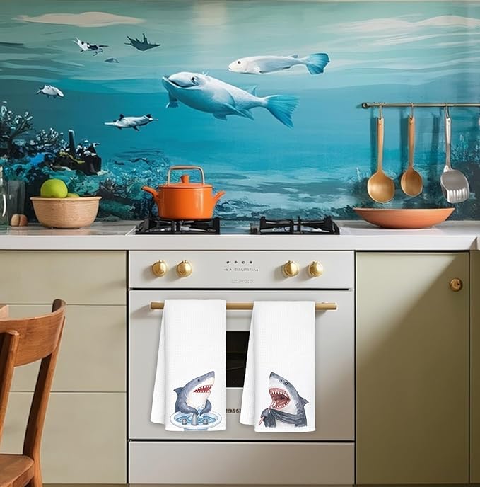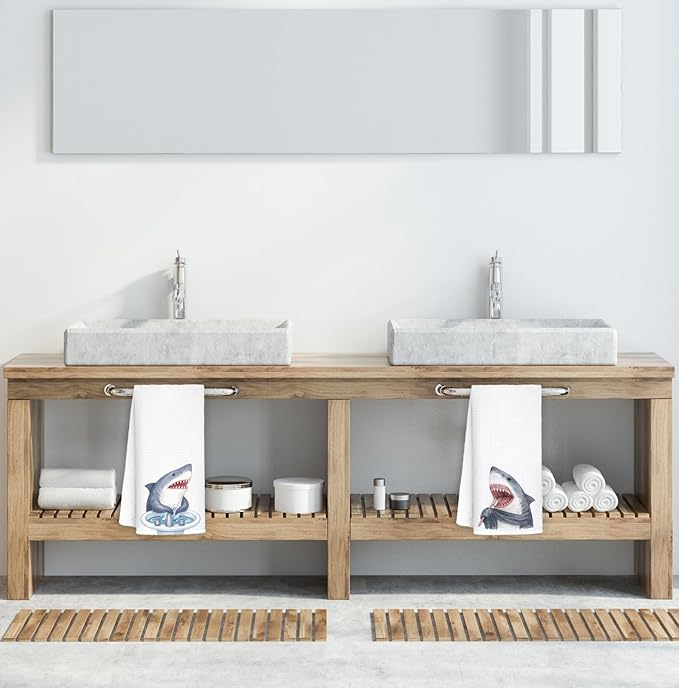 Shark Hand Towels,Toddler Bathroom Decor,Beach Towels,Coastal Beach Kids Bathroom Decor,Funny Shark Lovers Gifts 16x24 Inch Set of 2