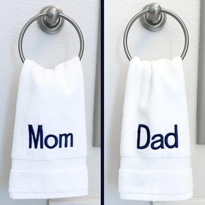 Navy Monogrammed Hand Towels for Bathroom - Luxury Hotel Quality Personalized Initial Decorative Embroidered Towel for Powder Room, Spa - GOTS Organic Certified - Dad and Mom