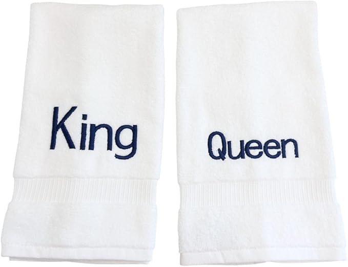 Navy Monogrammed Hand Towels for Bathroom - Luxury Hotel Quality Personalized Initial Decorative Embroidered Towel for Powder Room, Spa - GOTS Organic Certified - King and Queen