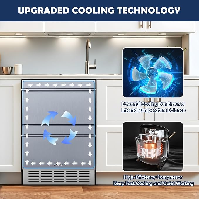 - Clean and Tidy Storage Design - Each drawer of this 24-inch beverage fridge is equipped with a mobile grid organizer. You can customize the space to suit your preferences and needs to avoid cluttered placement. Whether you are placing beverages, fruits, vegetables, or other types of food, it is perfectly adapted to different storage spaces