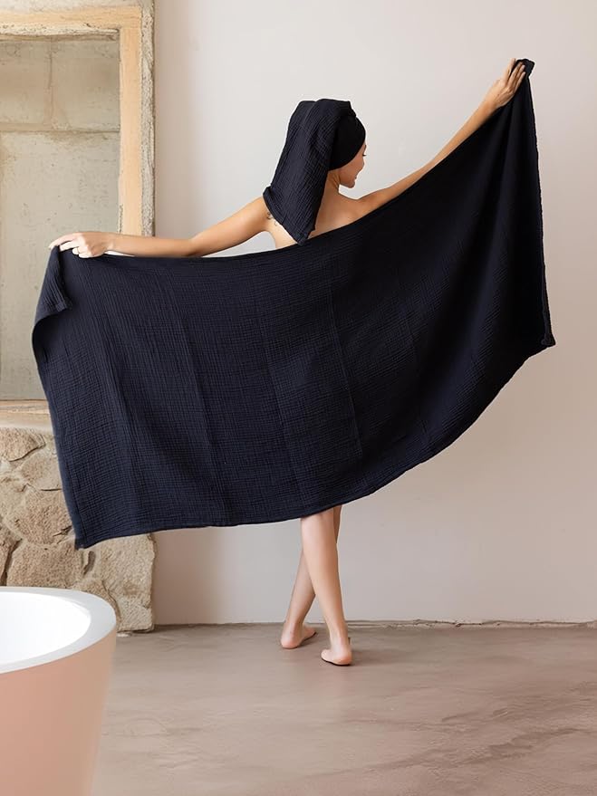 - The Magic of Quick-Dry & Absorbent Weave: Say goodbye to damp, heavy towels for good. Our unique muslin weave is incredibly thin and lightweight, yet its 4-layer structure is super absorbent, drying you off in seconds. More importantly, it dries itself in a fraction of the time of traditional terry cloth, staying fresh, airy, and odor-free in your bathroom