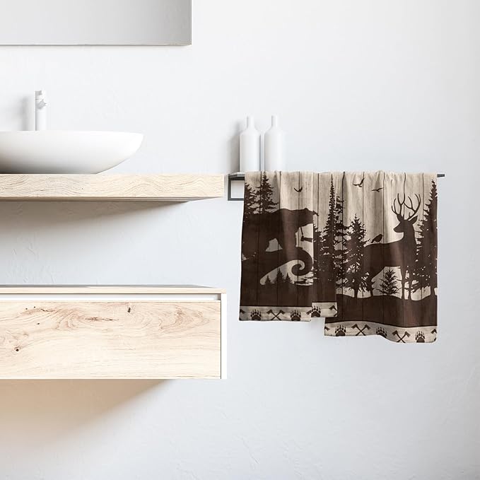 - ♣↙【Color & Design】Brilliant colors, unique pattern will automatically make towels stand out, and finished edges will prevent unravel. Country bear deer hand towels are the perfect complement to cabin kitchen decor, add fresh flair to your home decor.