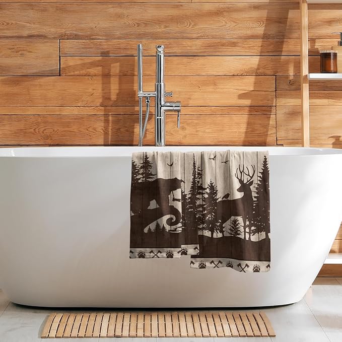 - ❃↘【Durable Materials】The cabin wildlife bathroom towels made of high quality soft polyester microfiber material, which are durable, light, breathable, sweat-absorbent and refreshing. No velvet, soft and skin-friendly, easy to carry.
