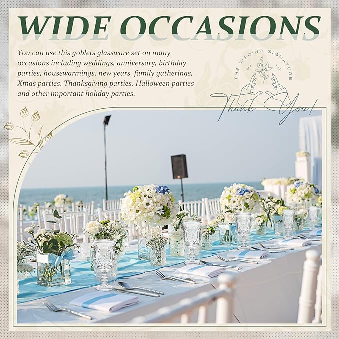 - Wide Occasions: you can use this plastic goblets set on many occasions including weddings, anniversary, birthday parties, housewarmings, new years, family gatherings, Xmas parties, Thanksgiving parties, Halloween parties and other important holiday parties