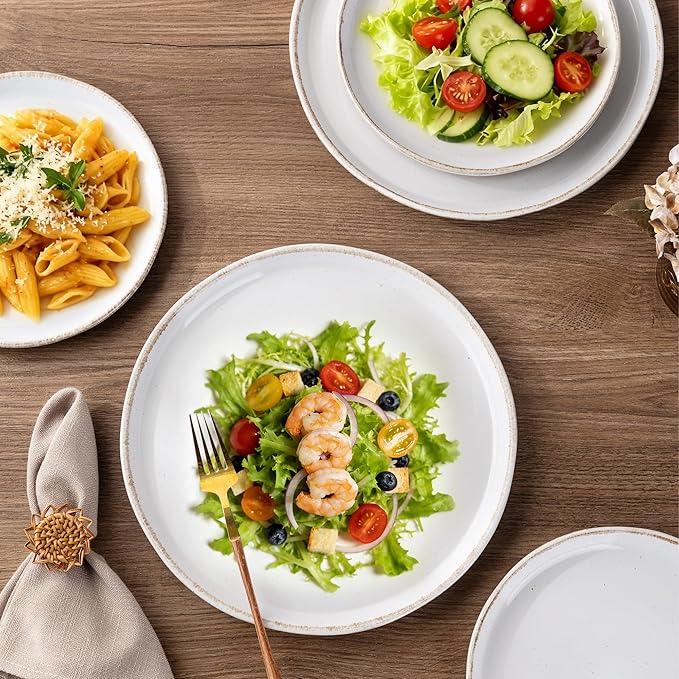 - DOUBLE GLAZE AND SCRATCH RESISTANT:Our dishes are fired at 2350℉ for 13 hours making it formimg a sturdy and durable scratch resistant glaze, no need to worry about scratches from your forks or knives.