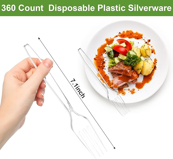 - 【Bulk Value: 360 Forks for Long-Term Use】This pack of 360 disposable forks delivers unbeatable value—stock up once and stay prepared for months. Perfect for parties or daily use, these plastic utensils eliminate the need for frequent reorders, making them a smart choice for anyone seeking both quality and savings. Whether you’re restocking the pantry for everyday meals or prepping for large gatherings, these clear plastic forks ensure you always have reliable plastic cutlery on hand
