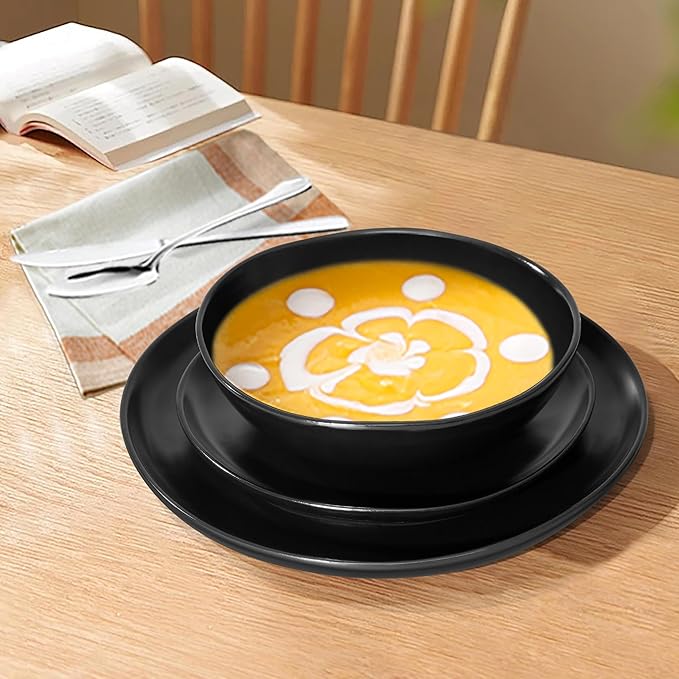 - Dining Set Service for 4, This 12-piece stoneware set includes 4 of each of the following: 10’’ dinner plates, 7.9’’ salad plates, 7.3’’-26oz Soup bowls, its versatile sizes cater for different cuisines, making it ideal for daily use or special events, perfect for family dinners, parties, restaurants and hotels