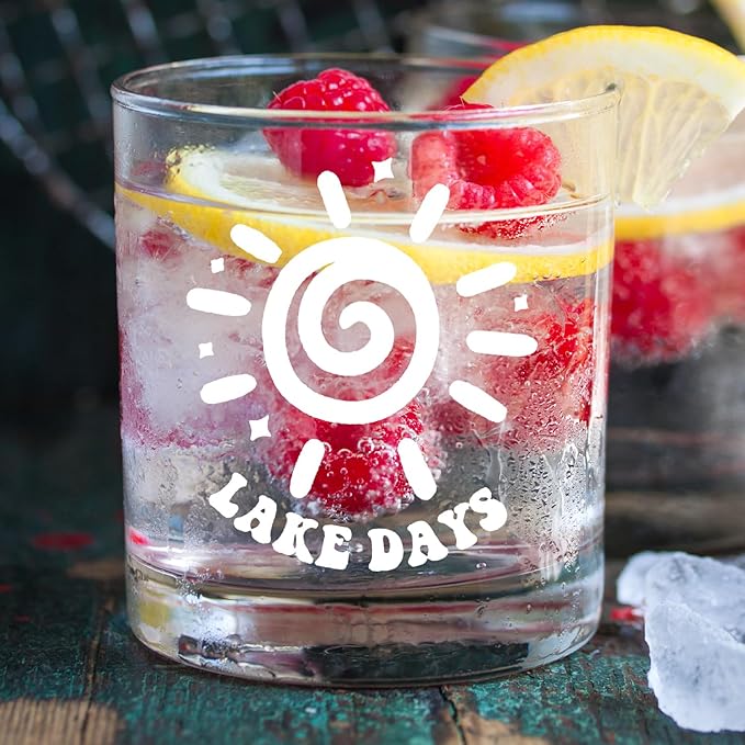 kunlisa Lake Gifts Whiskey Glasses, Lake House Decor and Gifts, Lakes Day 10 oz Drinking Rocks Glasses for Women Men Whisky Cocktail Scotch Bourbon Liquor